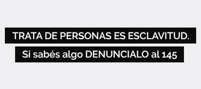 LEY 3186 «TRATA DE PERSONAS ES ESCLAVITUD. SI SABES ALGO, DENUNCIALO AL 145»
